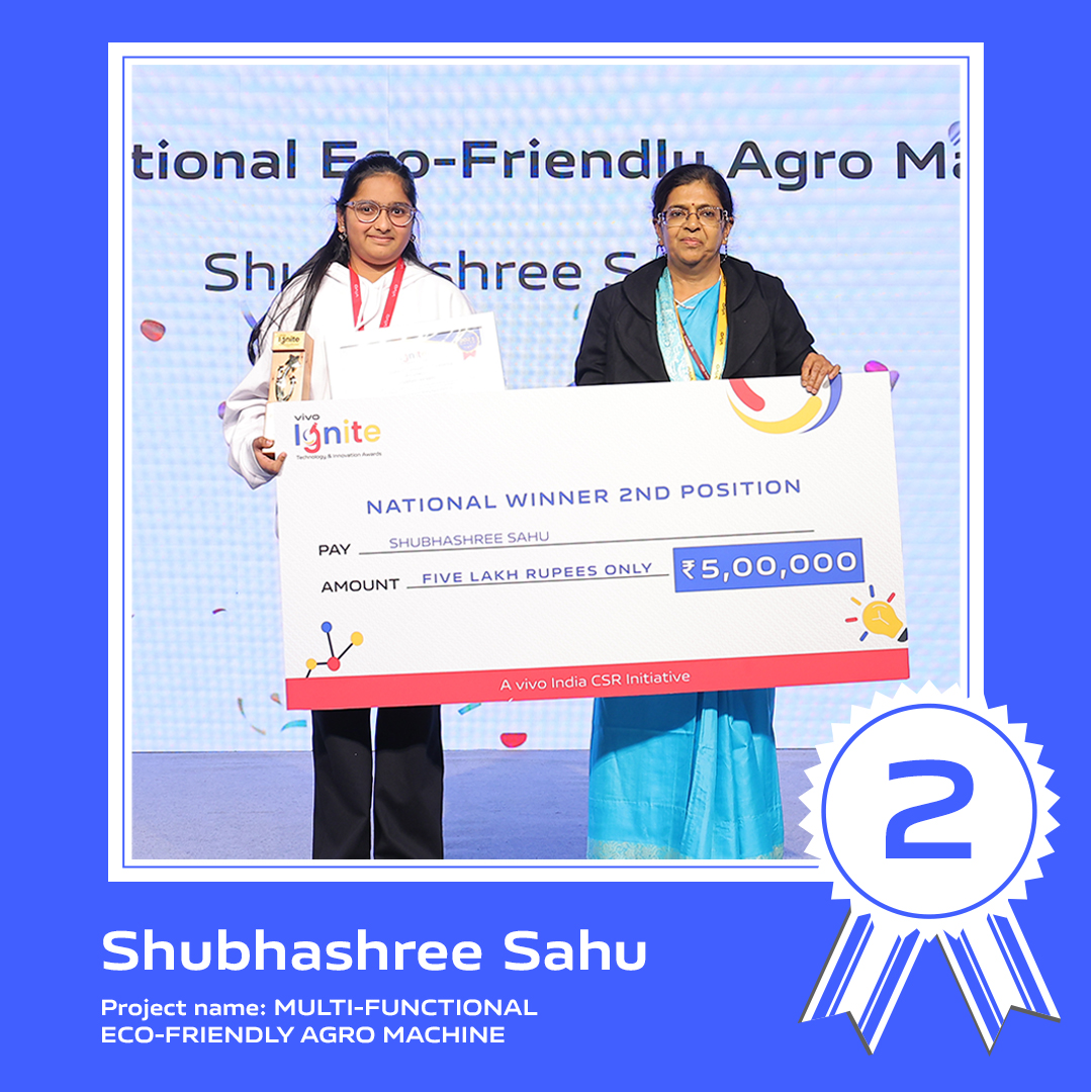 In India, 75% of farmers, mostly marginal, don’t use modern agricultural machines due to cost, lack of portability, environmental concerns, limited functionality, and reliance on non-renewable energy. After thorough research and testing, Shubhashree Sahu developed an agro-machine. Using solar energy and employing the principle of conservation of energy, it offers an affordable, portable, and eco-friendly solution. With its ability to perform multiple operations such as threshing, grain separation, straw cutting, winnowing, and bag stitching, the machine significantly enhances agricultural productivity. Certified by the Indian Institute of Rice Research and well-received by local farmers, this innovation promises to uplift rural communities and transform the agricultural landscape of India.